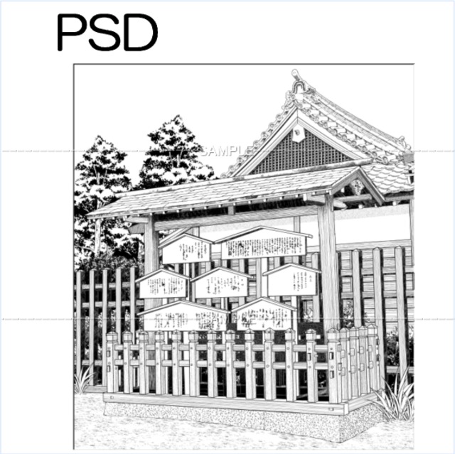 高札場PSDファイル 手前の高札場と奥の建物は 別レイヤーなので 手前の高札場のみでも 使えます