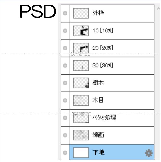 樹木・木目・ベタと処理