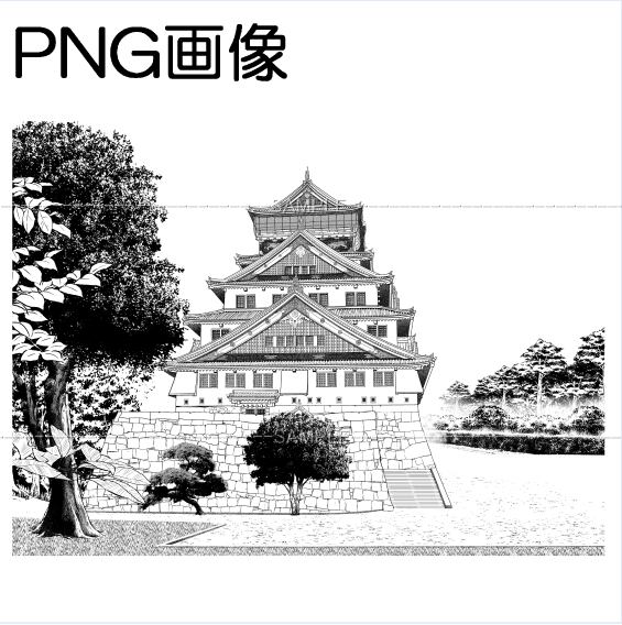 大阪城PNG画像 トーン処理はありません 木がある絵、木のない絵 ベタ処理もない線画のみの絵 3枚です 画像サイズ 6000×4428