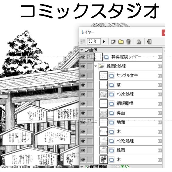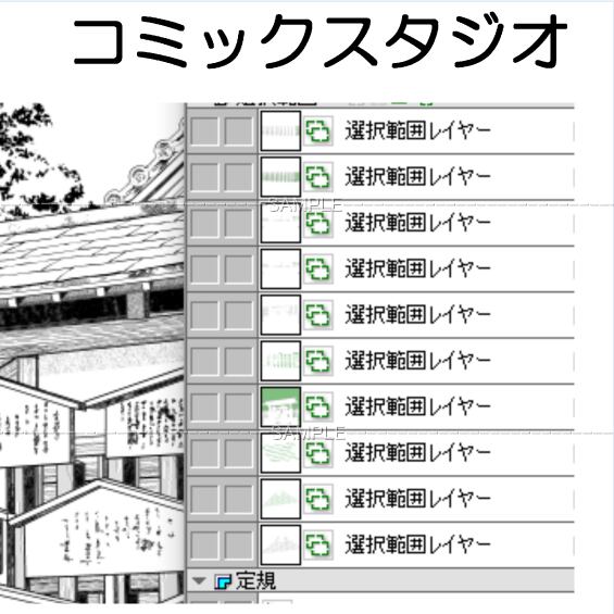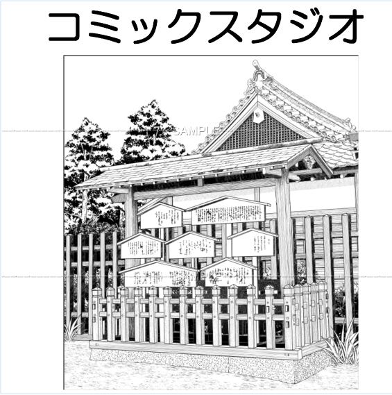 高札場コミスタファイル 手前の高札場と奥の建物は 別レイヤーなので 手前の高札場のみでも 使えます 各パーツの範囲選択も 細かく入っているので 加筆や処理がやりやすく なっています
