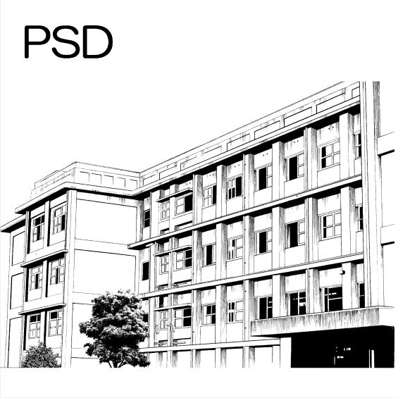 校舎-003psdファイル この背景画はアナログ作成です 紙の原稿用紙にGペンで描いたものを デジタルに読込んだものですので レイヤー分け等はありません アナログのガリガリした線です