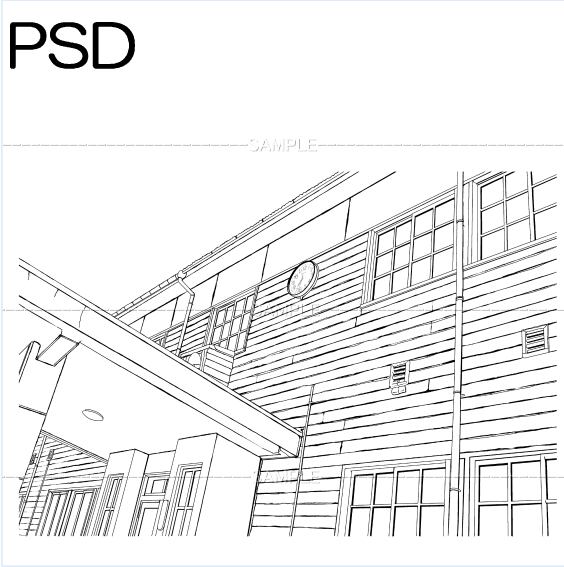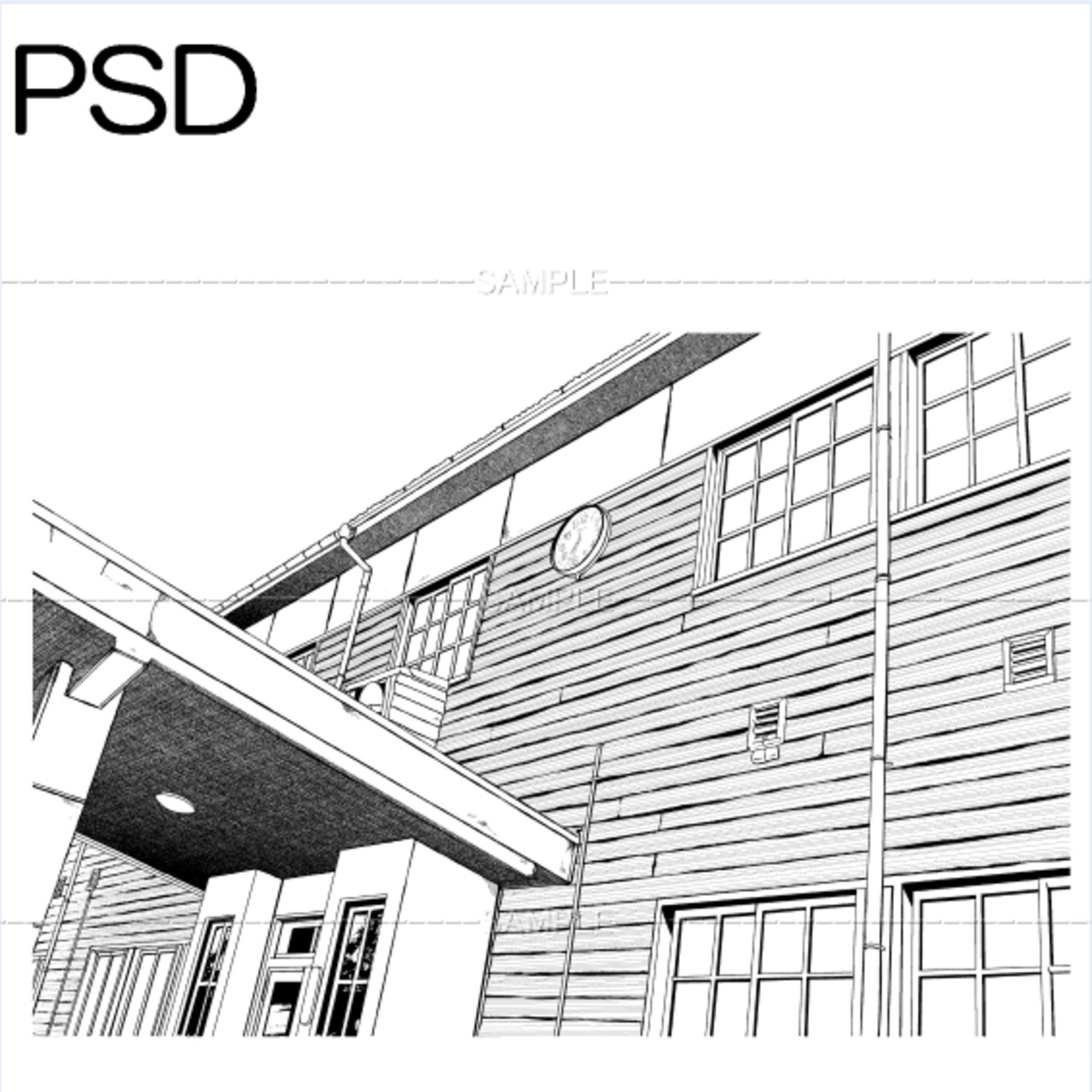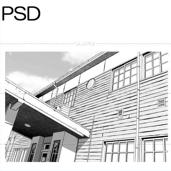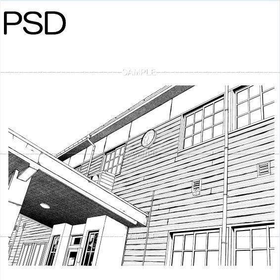 木造校舎002-3PSDファイル トーン使用する場合は 範囲選択フォルダから 選択して置き換えてください 作画内容は画像の各フォルダー レイヤーから確認できます