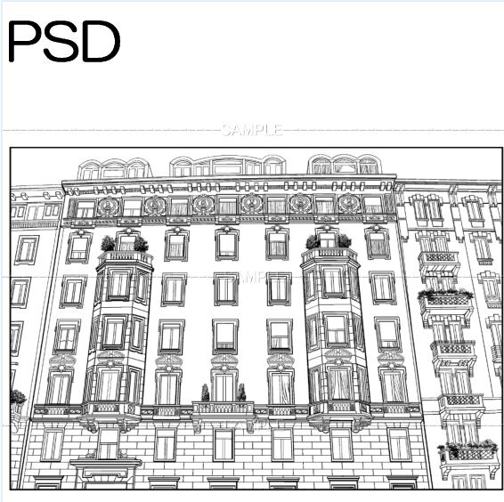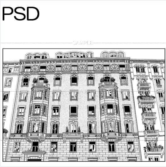 西洋建築003PSDファイル トーン使用する場合は 範囲選択フォルダから 選択して置き換えてください 作画内容は画像の各フォルダー レイヤーから確認できます