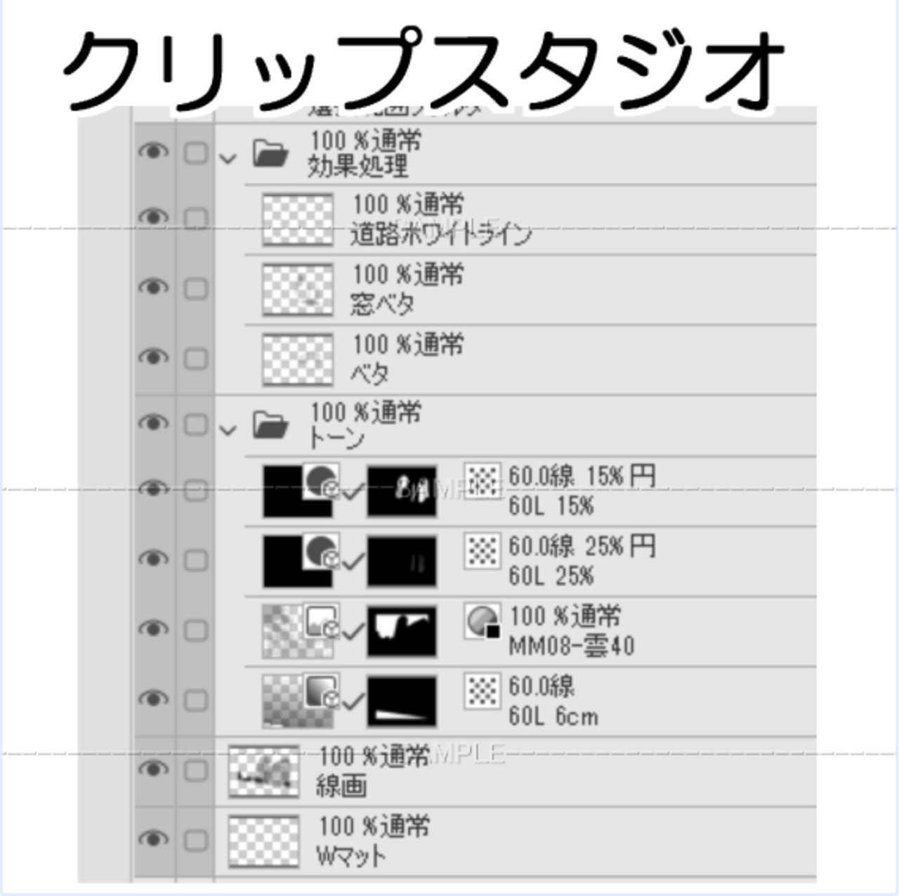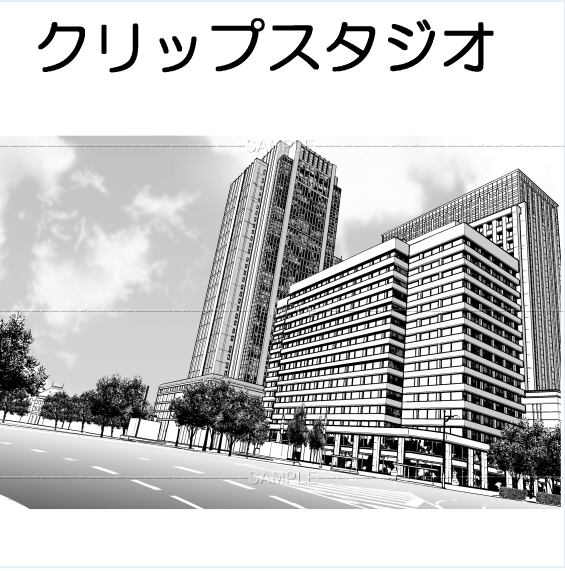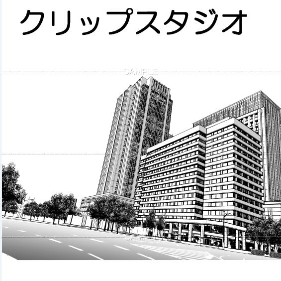 大通り交差点の街並みクリスタファイル トーン使用する場合は 範囲選択フォルダから 選択して置き換えてください 選択範囲レイヤー有り 作画内容は画像の各フォルダー レイヤーから確認できます