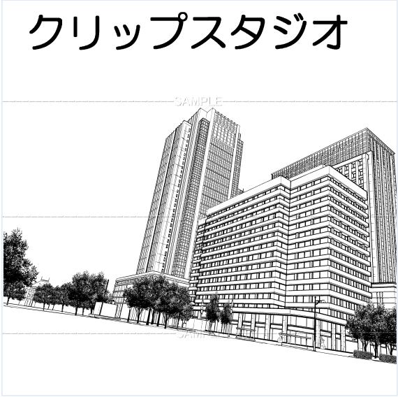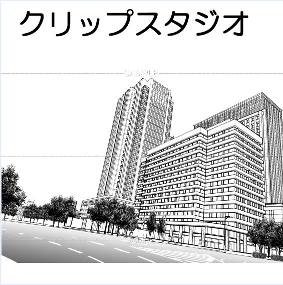 大通り交差点の街並みクリスタファイル | 漫画素材堂