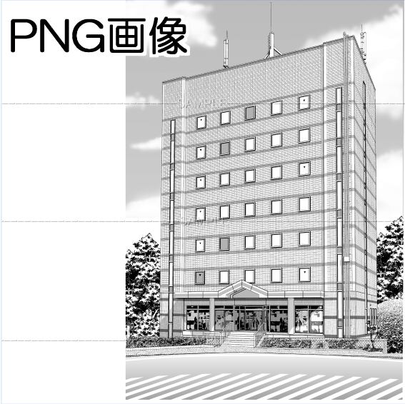 ホテル-005png画像 トーンベタ処理入り トーン無しベタ処理入り ベタと線画・線画のみの 4枚 原稿サイズ 4162×6000pixel 600dpi