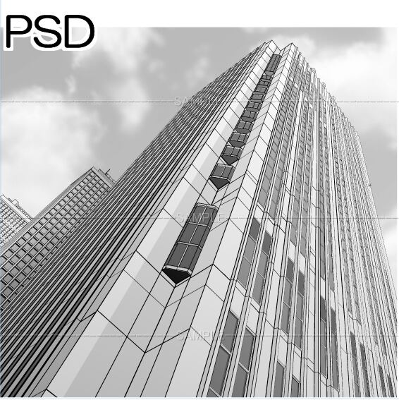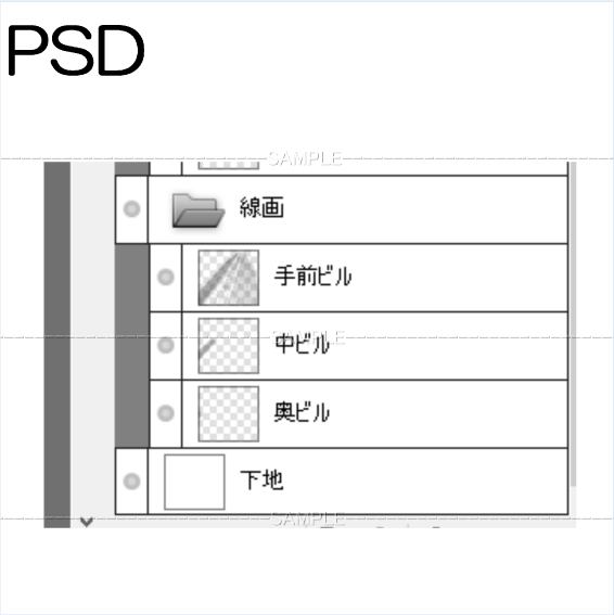 高層ビル-002PSDファイル グレーでトーン処理をしています ドットのトーン使用する場合は 選択して置き換えてください 作画内容は画像の各フォルダー レイヤーから確認できます
