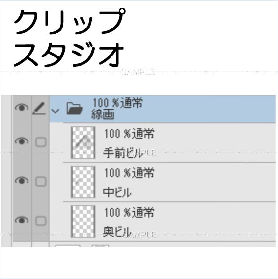高層ビル-002クリスタファイル トーンフォルダと 選択範囲フォルダ 両方あります 作画内容は画像の各フォルダー レイヤーから確認できます