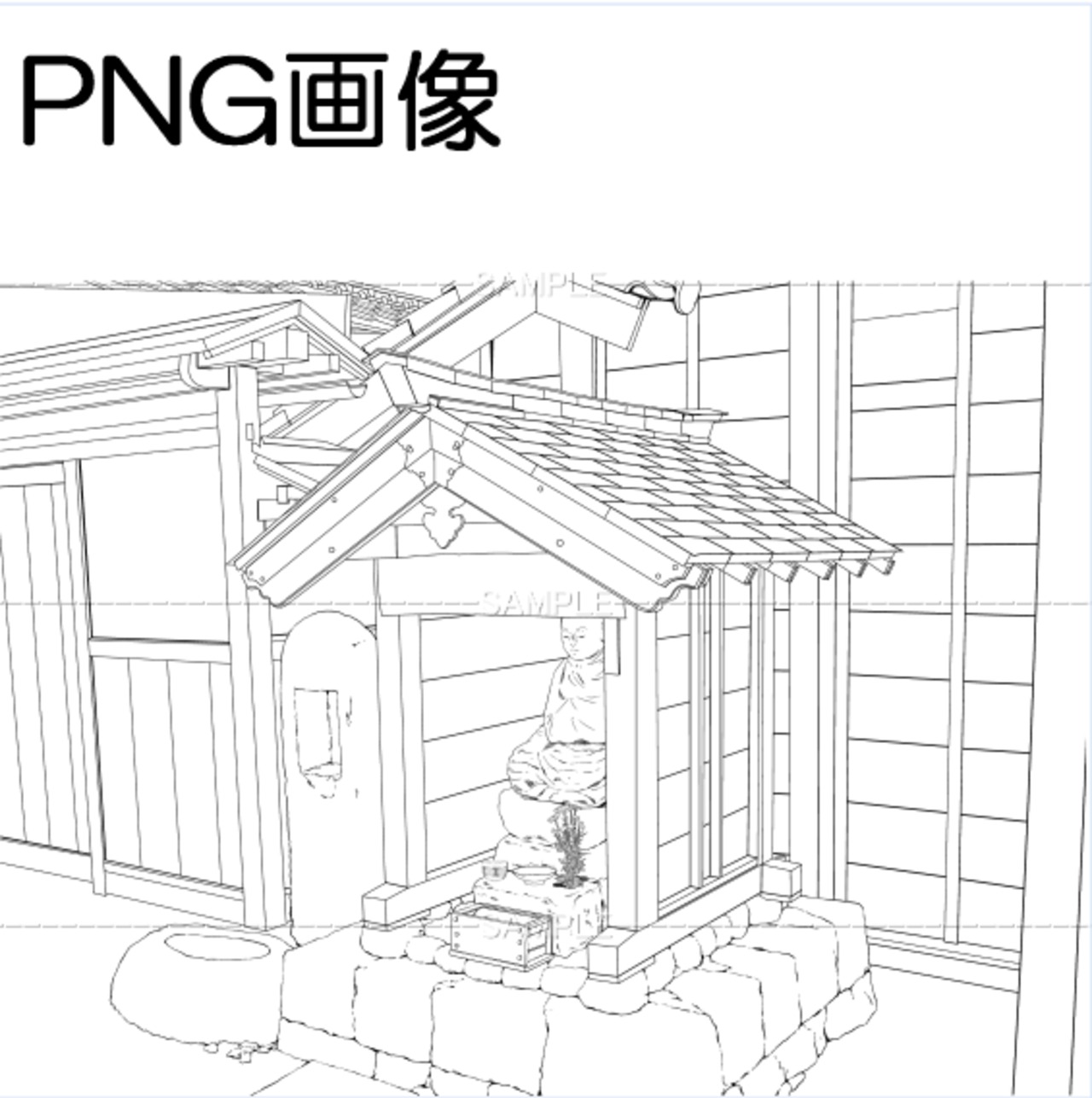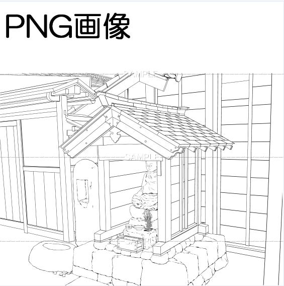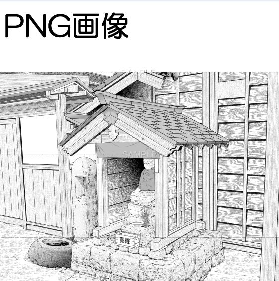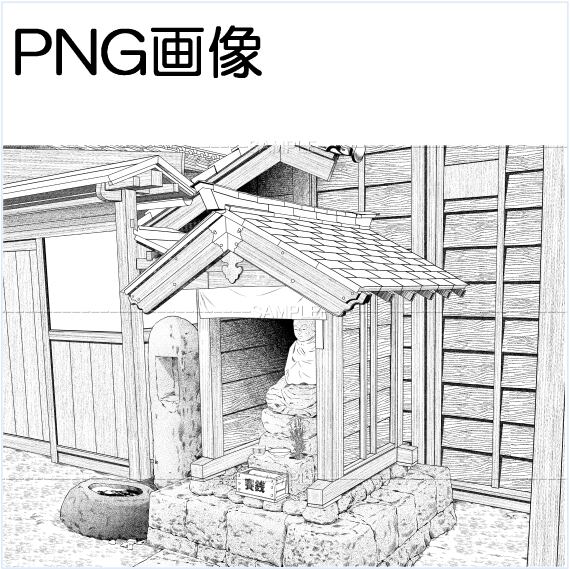 地蔵祠のある路地png画像 トーンベタ処理入り トーン無し 線画のみの3枚 原稿サイズ 6000×4502pixel 600dpi