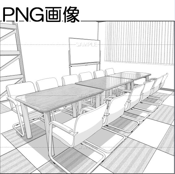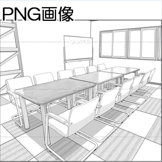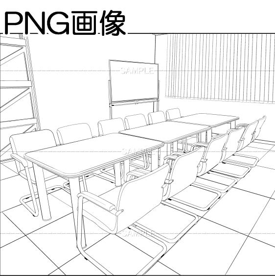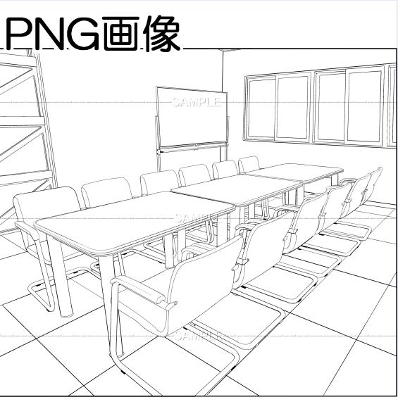 sw建物小会議室01png画像 トーン処理済みのブラインド有無し 線画のみブラインド有り無しの4枚 原稿サイズ 5000×4374pixel 600dpi 公共施設 コミュニティセンター 会議室 教室 学校