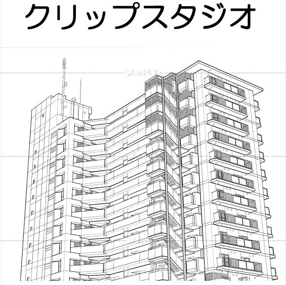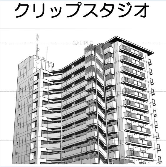 マンション-001クリスタファイル 選択範囲レイヤーあり 作画内容は画像の各フォルダー レイヤーから確認できます