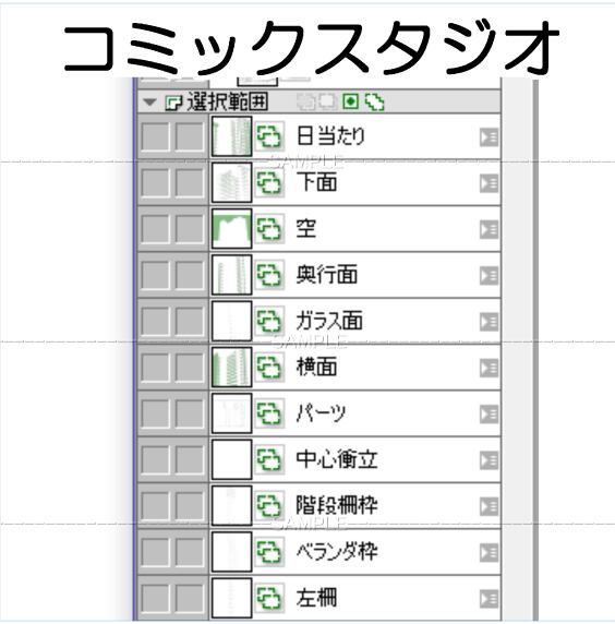 マンション-001コミスタファイル 選択範囲レイヤーあり 作画内容は画像の各フォルダー レイヤーから確認できます