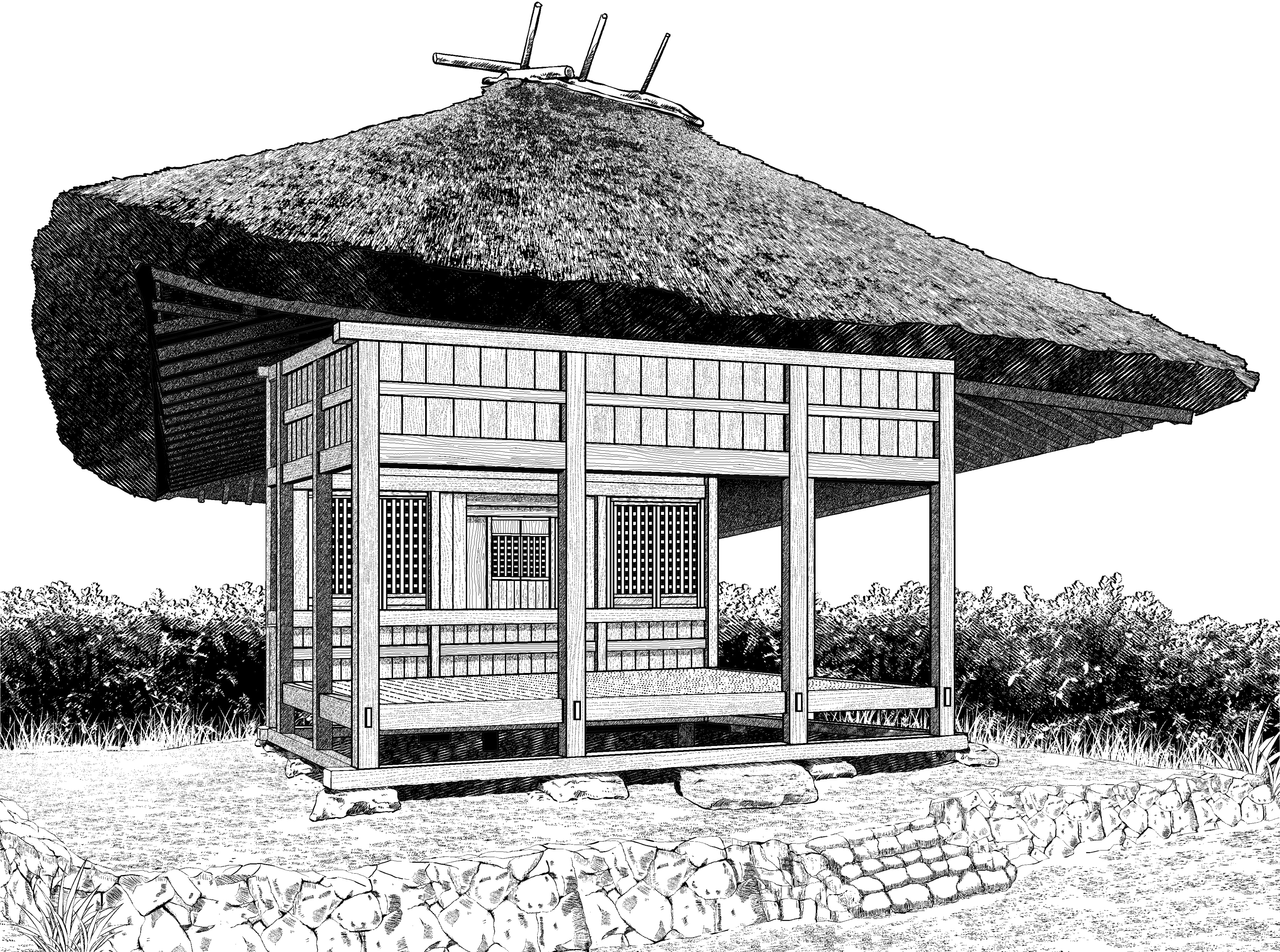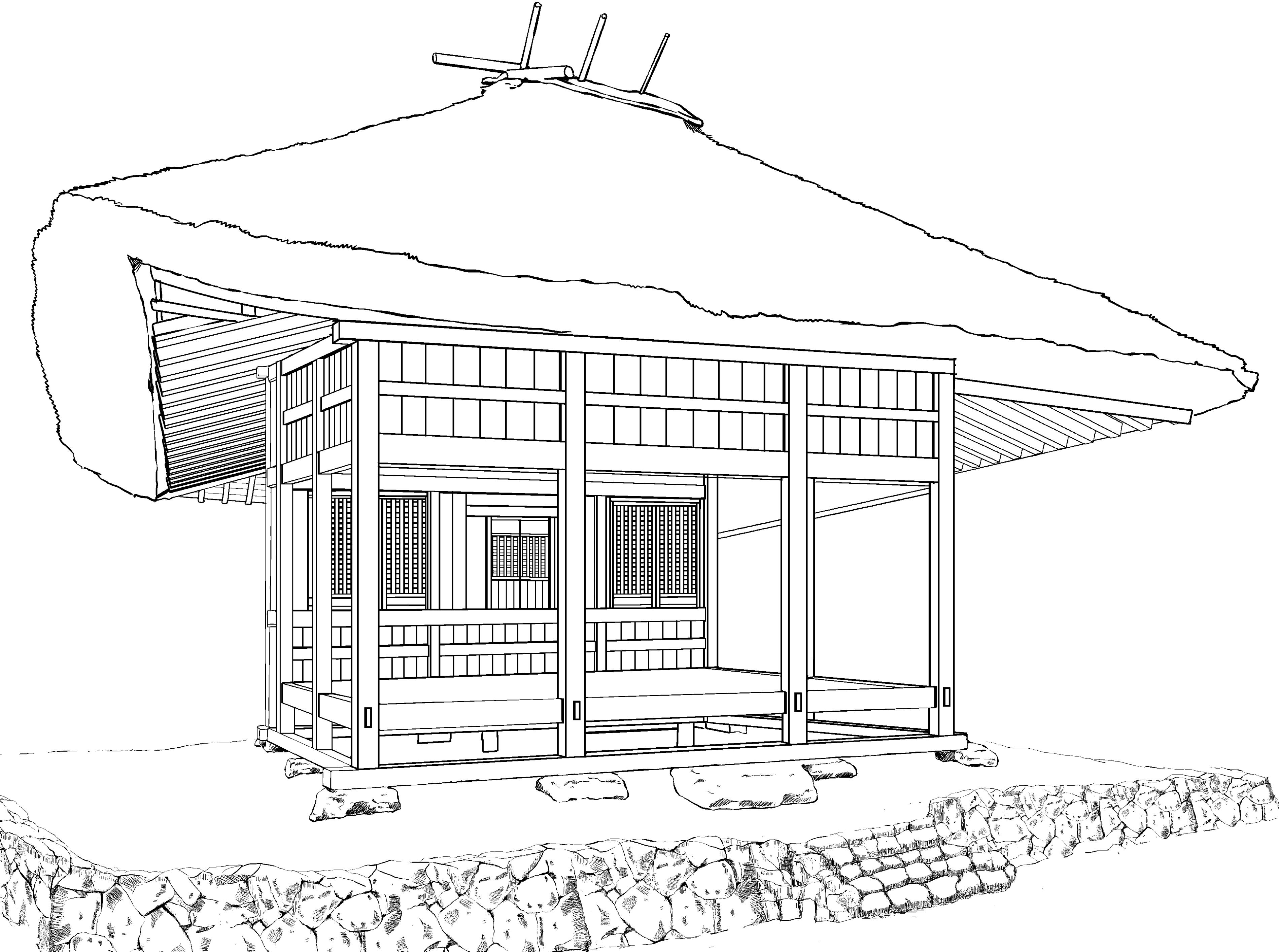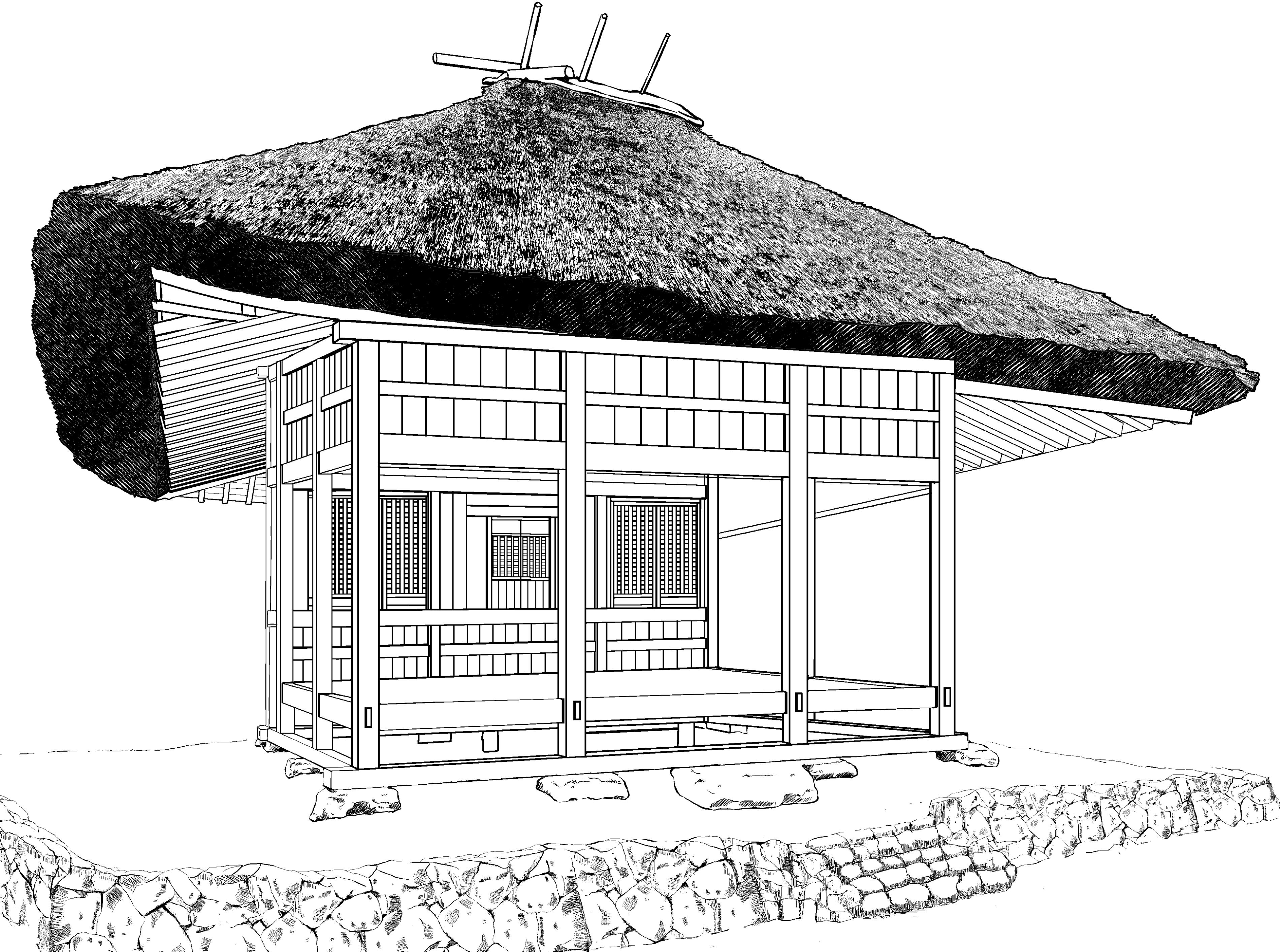 茅葺きのお堂png画像 処理済みから線画までの4枚 画像はサンプルをご覧ください 原稿サイズ 3800×2828pixel 600dpi 薬師堂