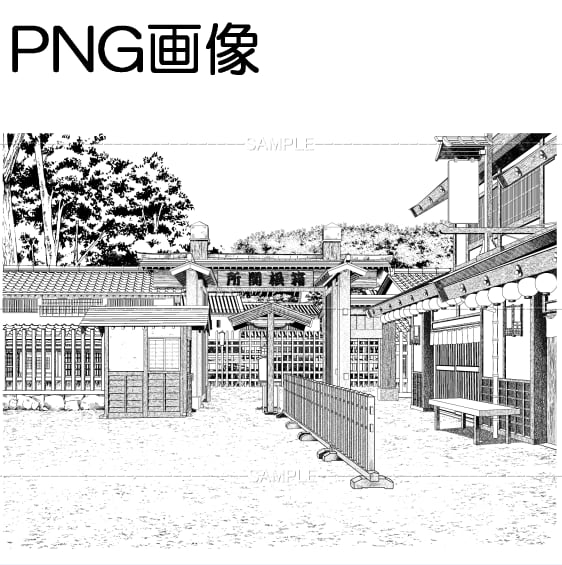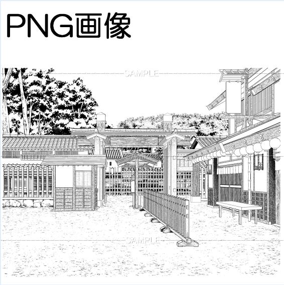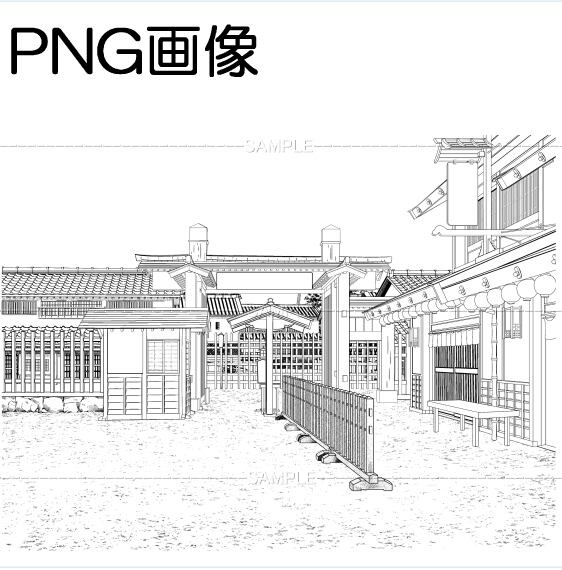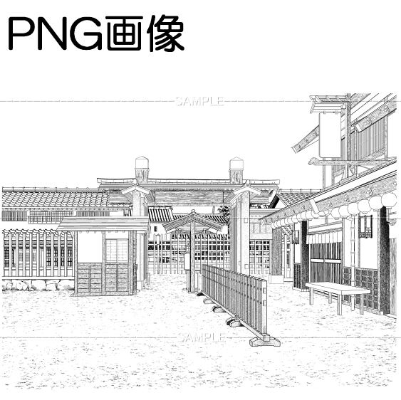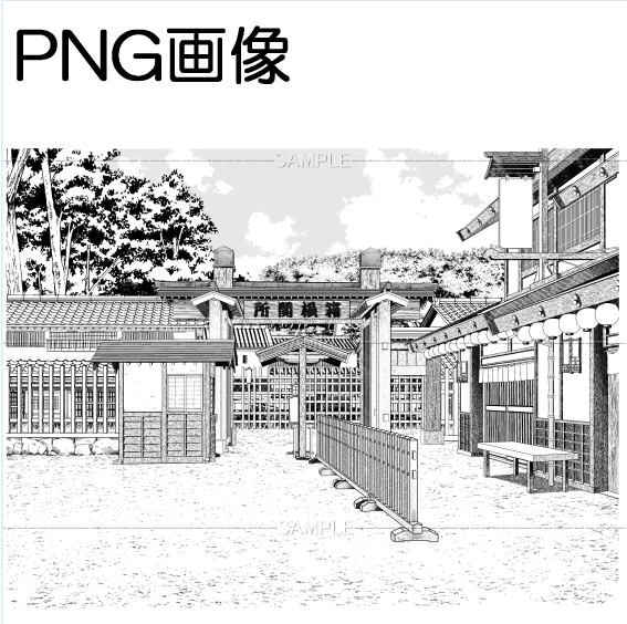 関所-01PNG画像 トーンベタ処理入り トーン無し 線画のみなどの6枚 画像内容はサンプル画面で 確認してください 原稿サイズ 5000×3747pixel 600dpi