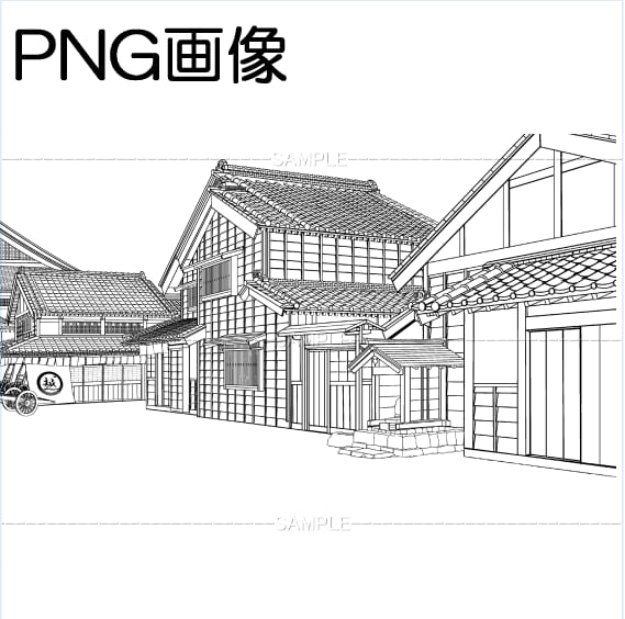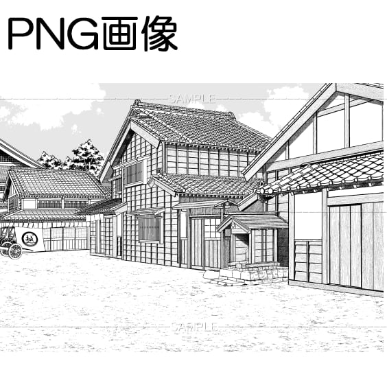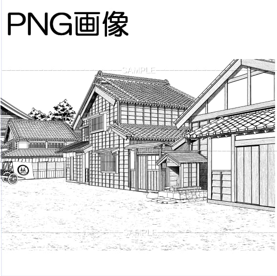地蔵祠のある通りPNG画像 トーンベタ処理入り トーン無し 線画のみなどの4枚 画像内容はサンプル画面で 確認してください 原稿サイズ 3800×2649pixel 600dpi