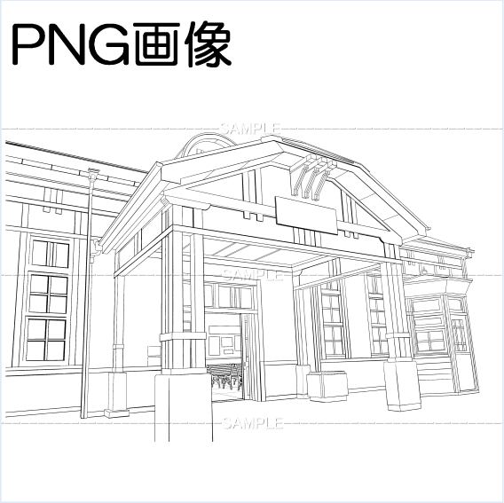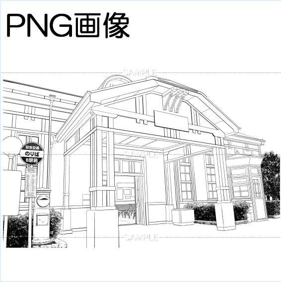 HG駅舎-01PNG画像 トーンベタ処理入り トーン無し 線画のみの3枚 画像内容はサンプル画面で 確認してください 原稿サイズ 5400×3565pixel 600dpi 駅 萩駅
