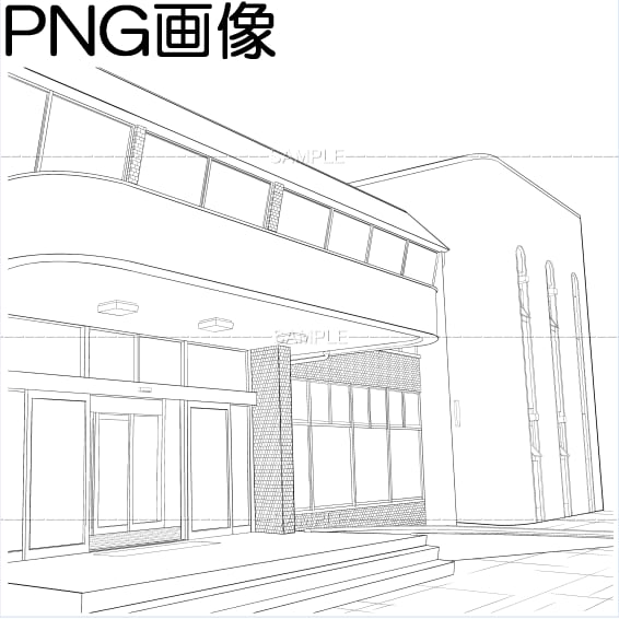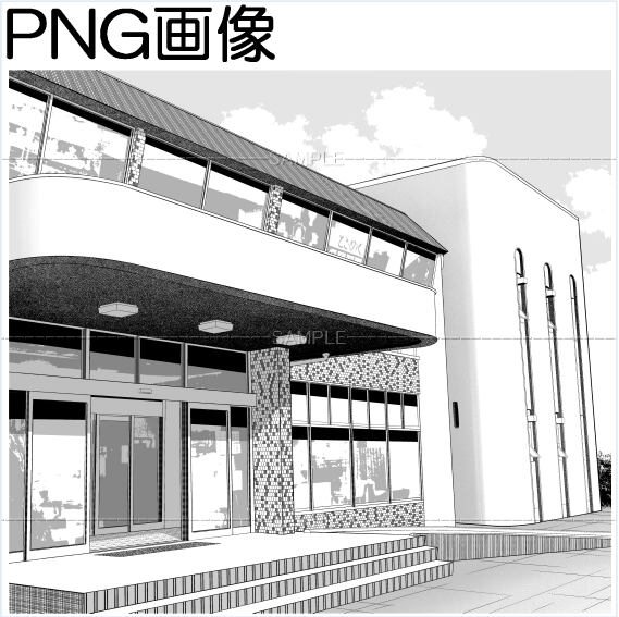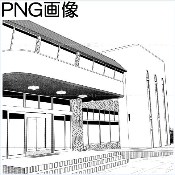 施設-01PNG画像 トーンベタ処理入り トーン無し 線画のみの3枚 画像内容はサンプル画面で 確認してください 原稿サイズ 5500×4956pixel 600dpi 公共施設 コミュニティセンター