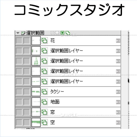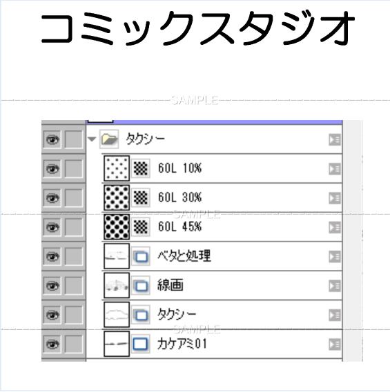 Aローカル駅-001コミスタファイル 選択範囲フォルダ有り タクシーは別フォルダ 作画内容は画像の各フォルダー レイヤーから確認できます