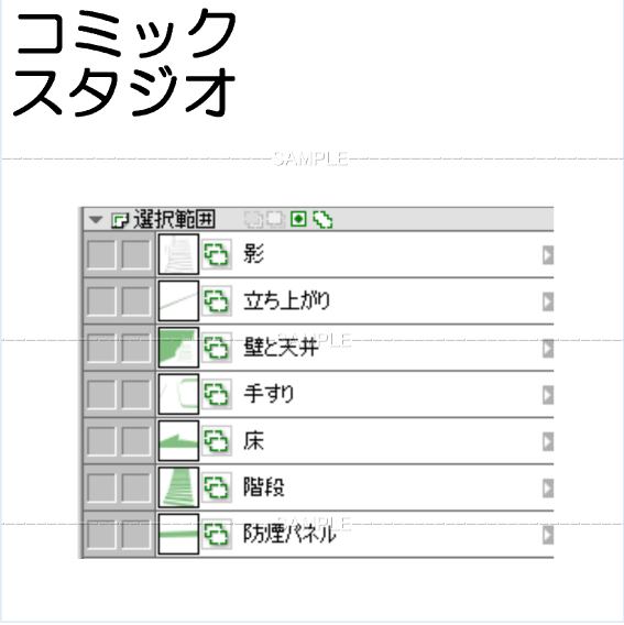 sw建物廊下・階段01コミスタファイル 選択範囲レイヤーあり 作画内容は画像の各フォルダー レイヤーから確認できます