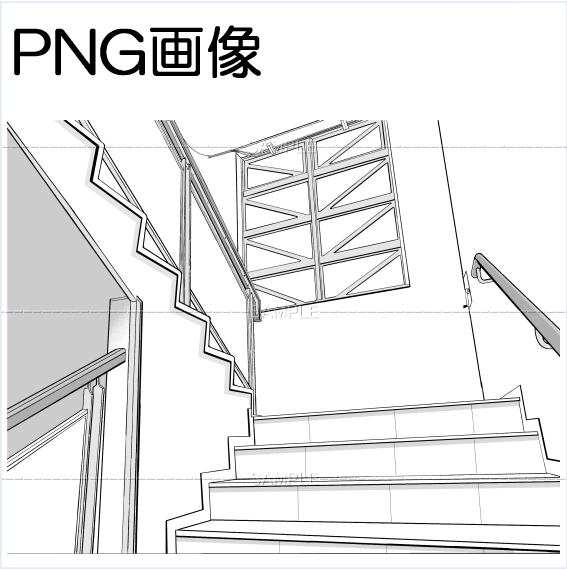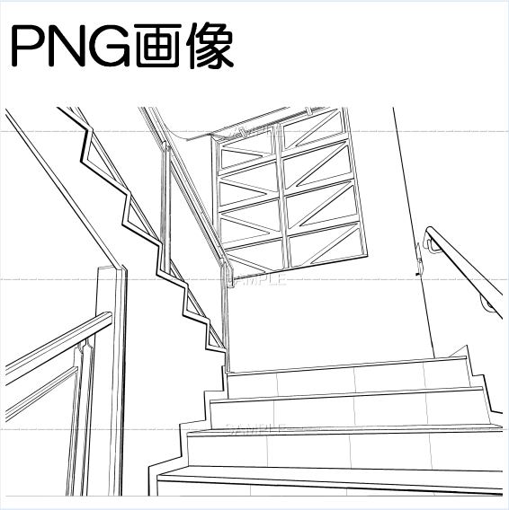 sw建物廊下・階段05PNG画像 トーン処理入り 線画のみの2枚 画像内容はサンプル画面で 確認してください 原稿サイズ 5000×3918pixel 600dpi 公共施設 コミュニティセンター 学校 階段