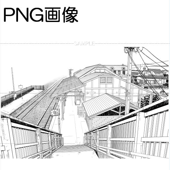 HG駅-03PNG画像 トーンベタ処理入り トーン無し 線画のみの3枚 画像内容はサンプル画面で 確認してください 原稿サイズ 5500×3646pixel 600dpi