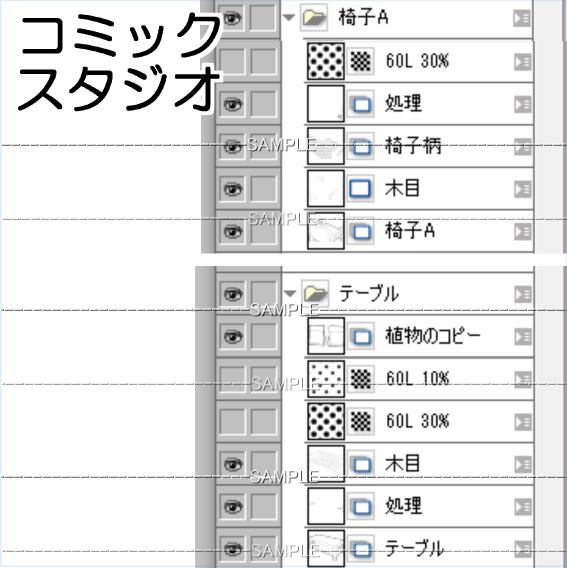手前の椅子と机はそれぞれ別レイヤーと